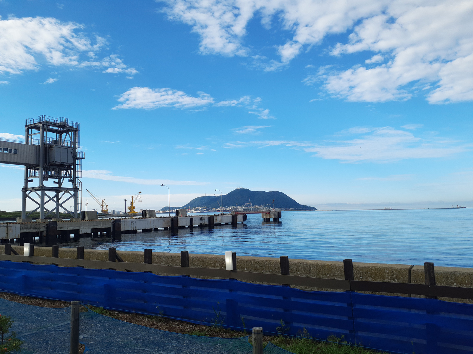 函館山が見えます。あれ、山頂まで道路が続いているやつですよね、確か。