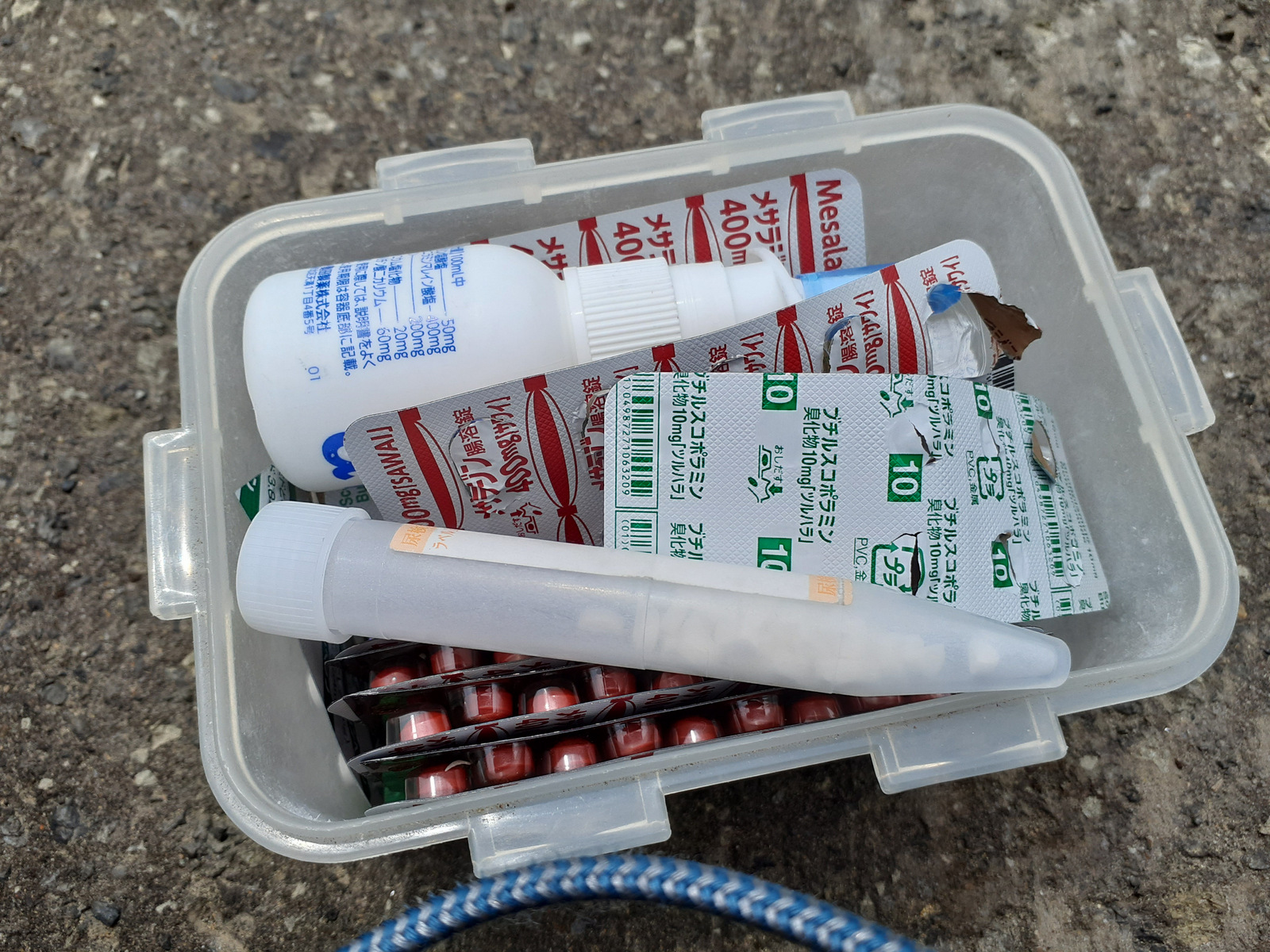 とりあえず道路脇で疲れたから休みつつ、服薬。メサラジン、アルプラゾラム、そして尿路結石がヤヴァいので、尿管の痙攣を防ぐ目的でブチルスコポラミン。メサラジンはいつもの潰瘍性大腸炎のやつですが、効いているという実感は今までにあったかな。飲み始めたとき(四半世紀くらい前)はあったかな。アルプラゾラムは向精神薬。飲んでいる量は推奨よりも少ないレベルですが、こいつ、血中濃度?が下がるといろいろなところに身体的症状が出てきます。顔が突っ張るとか、胃がムカムカするとか、反跳性不眠みたい(睡眠薬じゃないからね)なのがあるとか。依存しやすいって意味では飲み始めた時点で負け組ってことですかね(爆滅 ブチルスコポラミンは、大腸カメラのときに肩に注射されたら唾液が一気に出なくなるんだけど、服用だと2錠(推奨1錠)飲んでも副作用っぽいのさえ出てこない。いろいろ大丈夫かね、ふうたろうは?