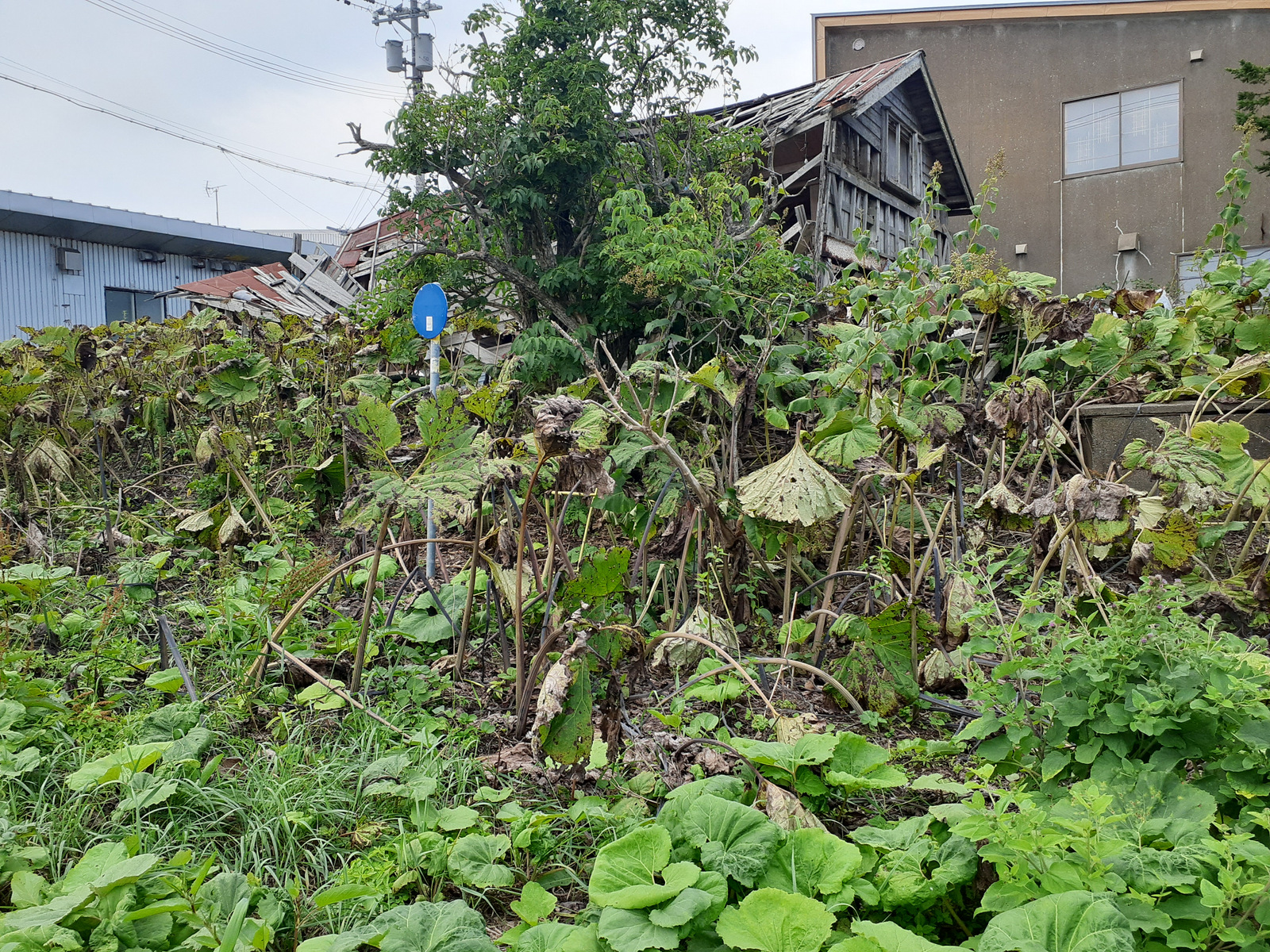 フキが大量に生えて、そして枯れています。流石にこの辺りの気候で高温障害ってことはないと思いますが、こんなに枯れるもんなんですかね。
