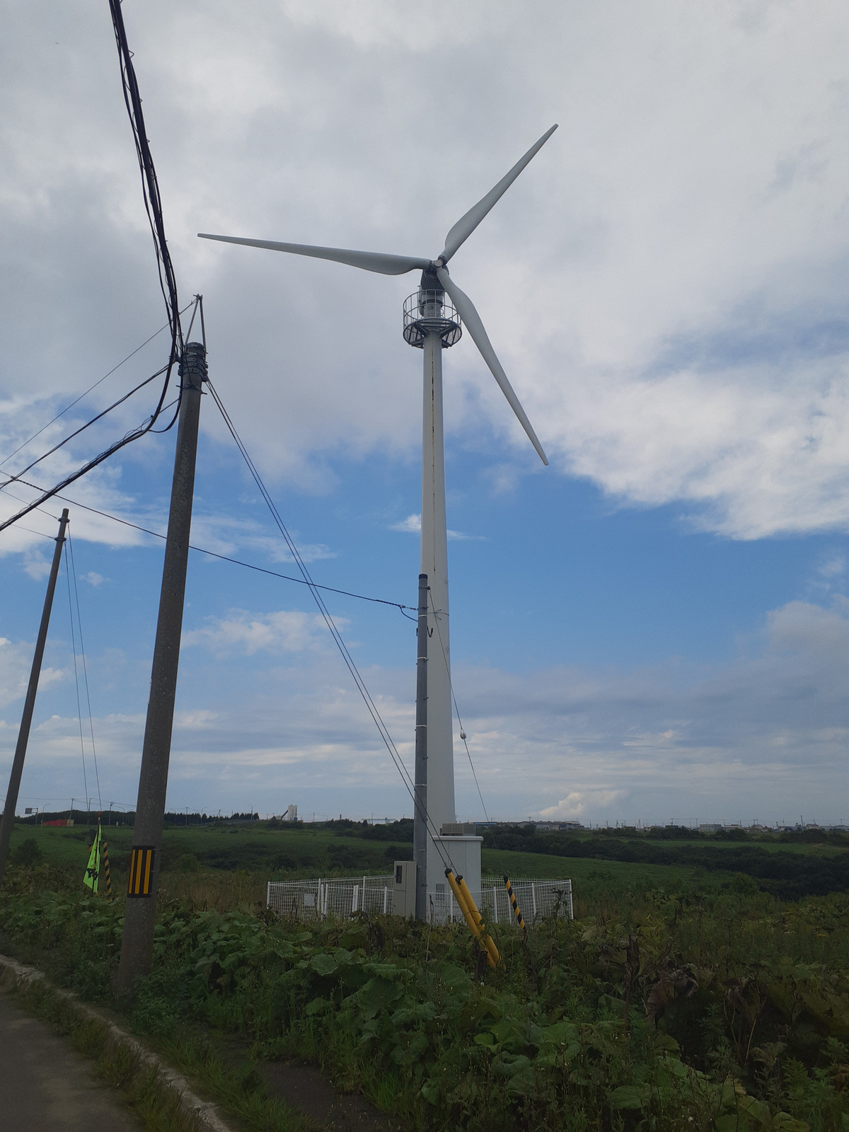風力発電の風車、が、止まっていますね。考えたらこういう場所は風が強くて自転車を漕ぐのが嫌になるものですが、今日は湿度が高くて、少し日がさしただけで不快な暑さを感じます。