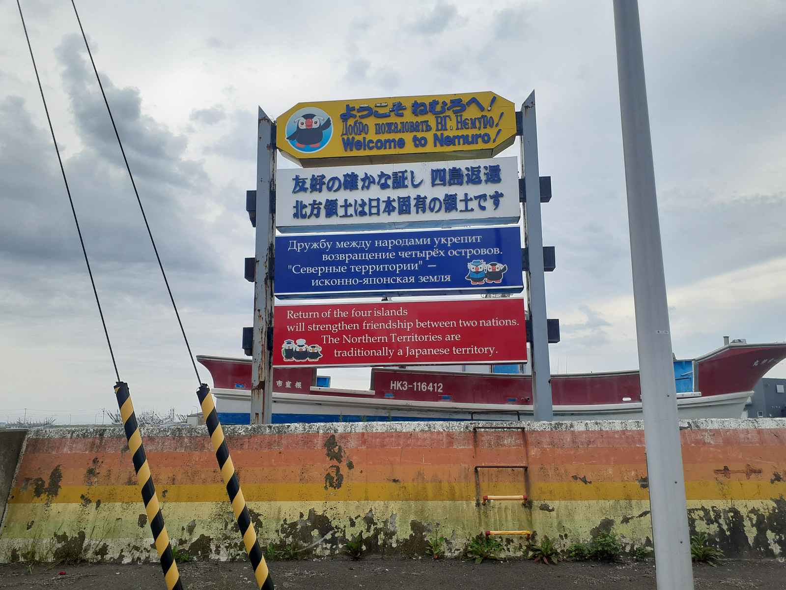 北方領土の返還を訴える看板。日本語・ロシア語・英語であります。四島返還、というところは気になりますが‥。この領土問題は今生きている日本人とロシア人が、生きている間に解決することはないかもしれません。ただ、この領土が本来どこに帰属しているのかをはっきりさせておかないと、未来永劫解決しないと思います。日本は北方領土と尖閣諸島と竹島、3つもありますからね、大変ですね。