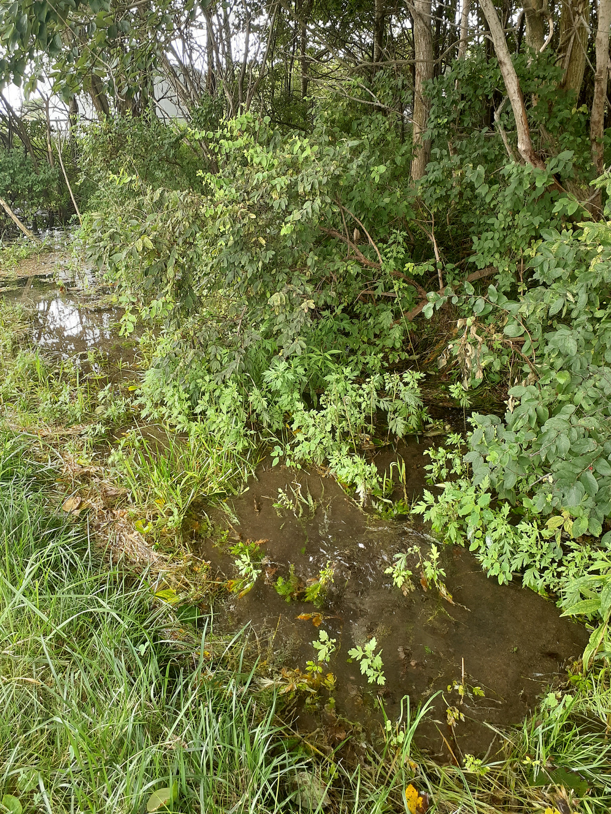なんでこんなところに湧き水?いや、湧き水にしては周りに沈んでいる草が青すぎる。