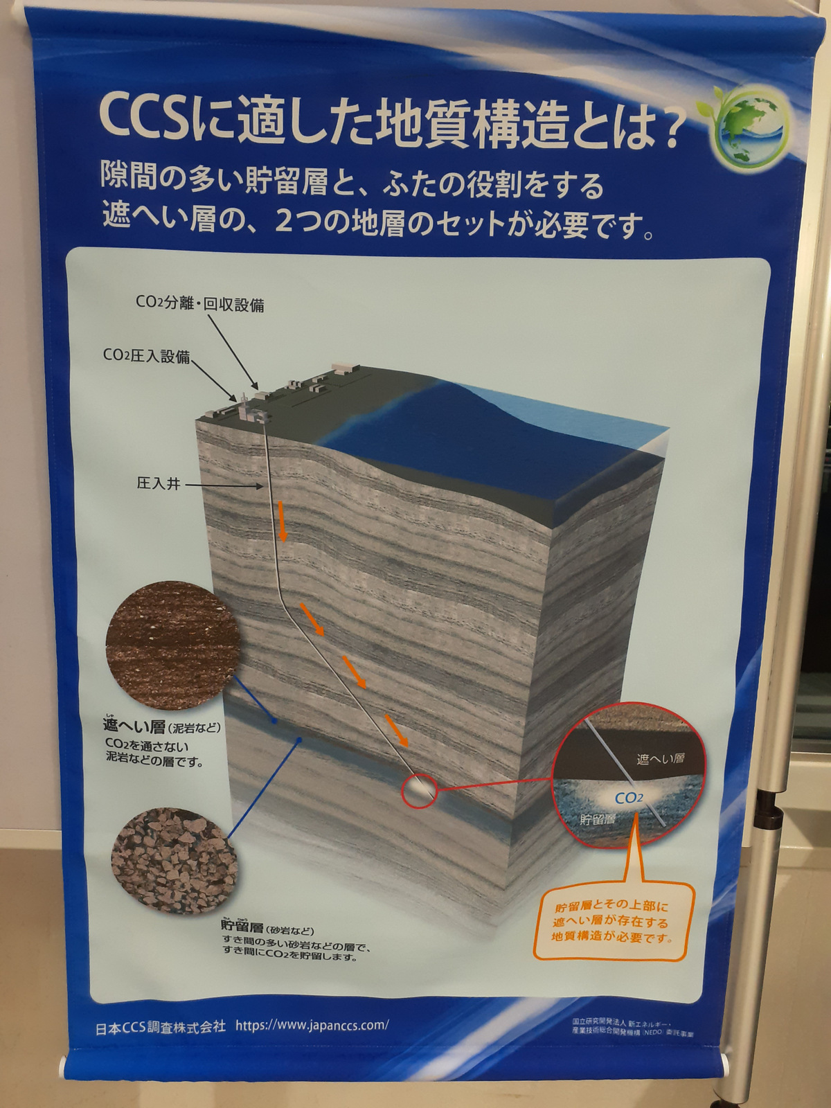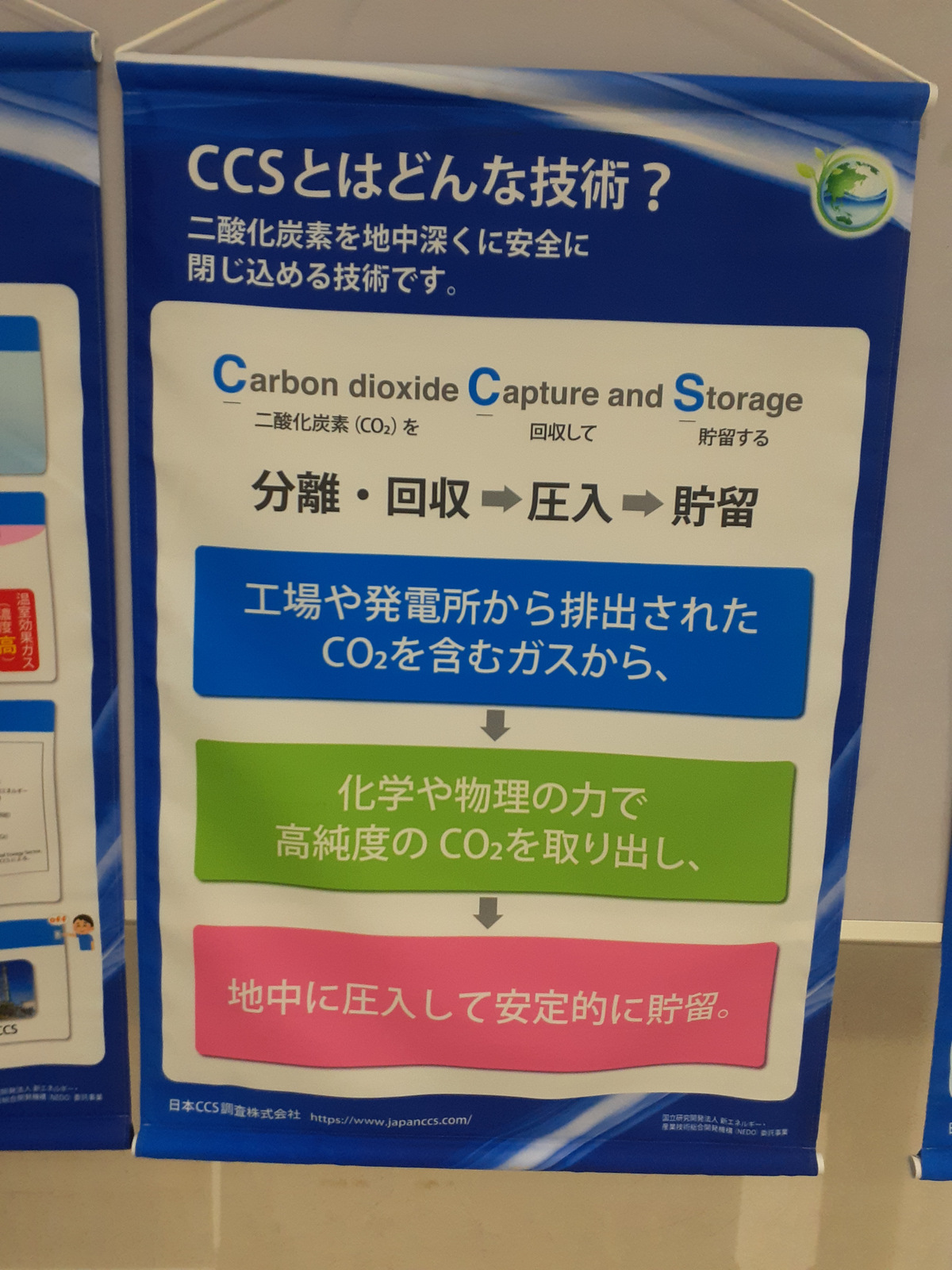 そして、ずっと気になっていたCCS(Carbon dioxide Capture and Storage)の解説が、フェリー乗り場にありました。うん、渡りに船ですね。さすがフェリー乗り場です(何